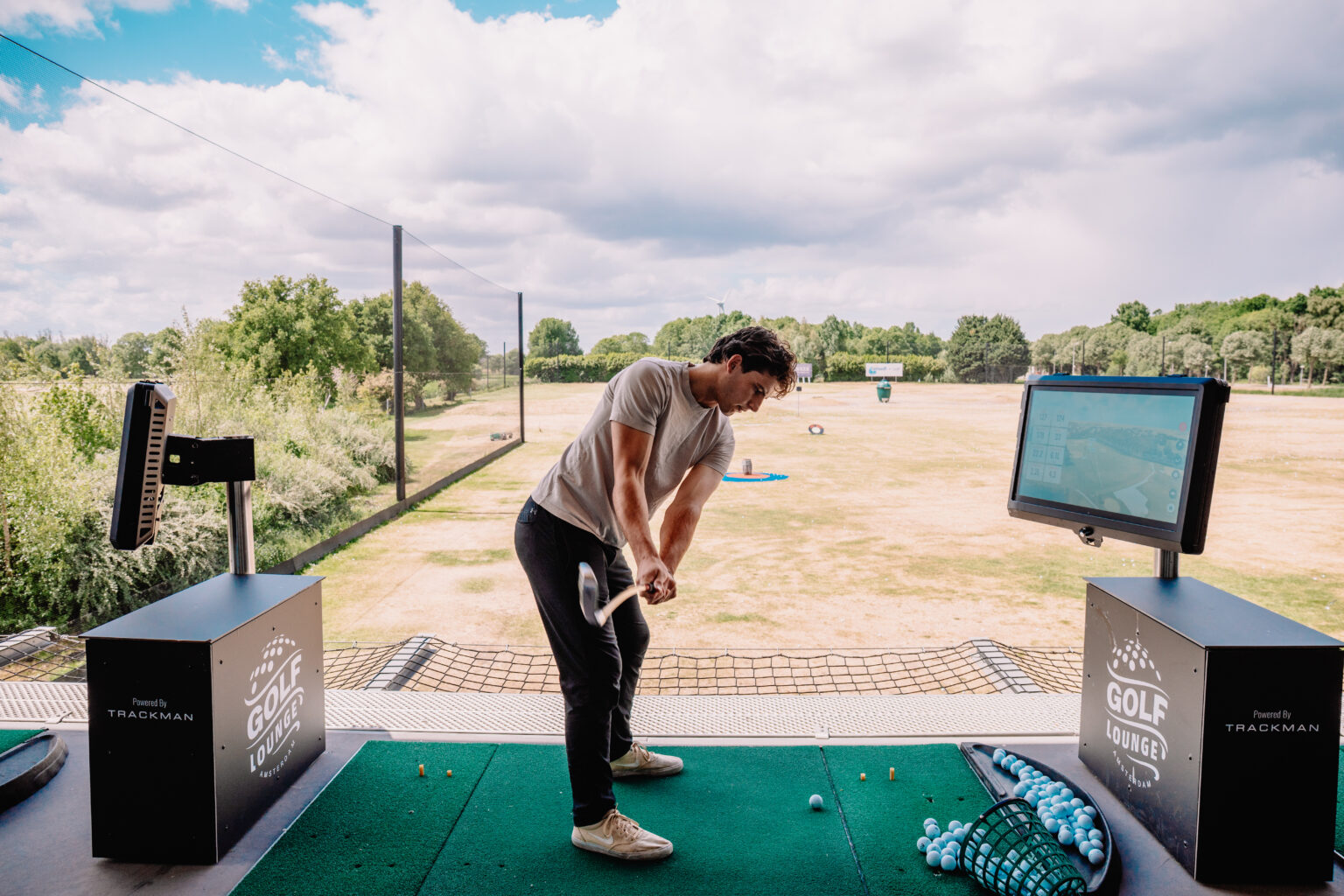 Our golf practice facilities in Amsterdam include a professional putting green to refine your short game, a spacious pitching area to work on your swing, and a free outdoor driving range equipped with Trackman technology for instant swing analysis.
